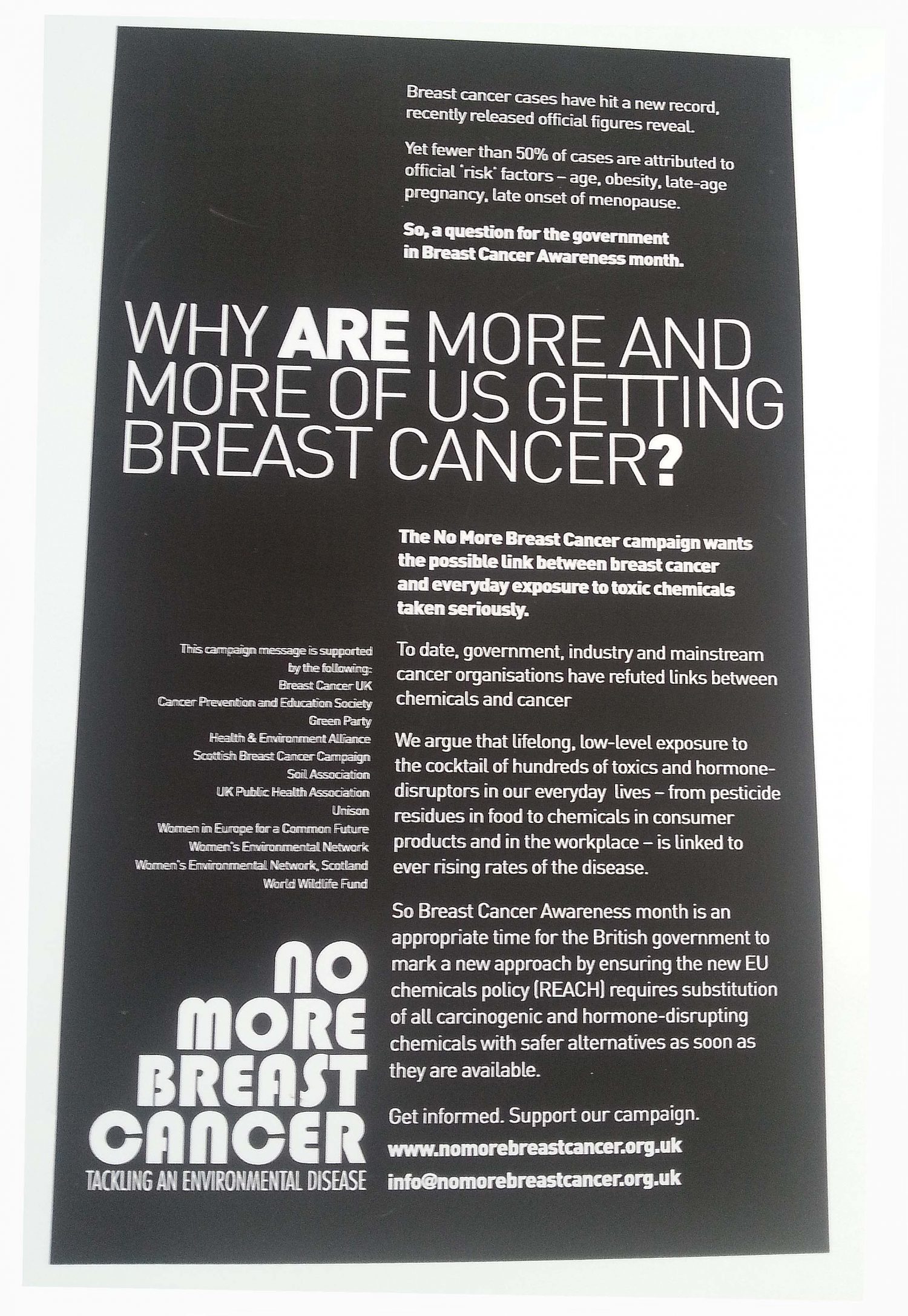 Stopping Breast Cancer Before It Starts. From Pink to Prevention asks breast cancer charities, government and industry to act upon the evidence linking environmental and occupational links to breast cancer.